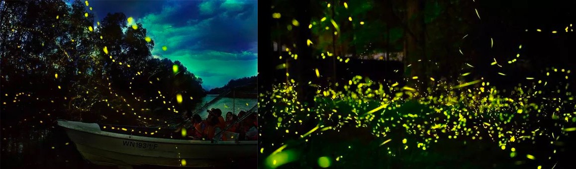 乘船观赏萤火虫,等待萤火虫闪闪发光后整个树林变成一丛“圣诞树”的美景,也能目睹特别节目“与萤火虫亲密接触”,还您一个萤火虫梦幻之夜。