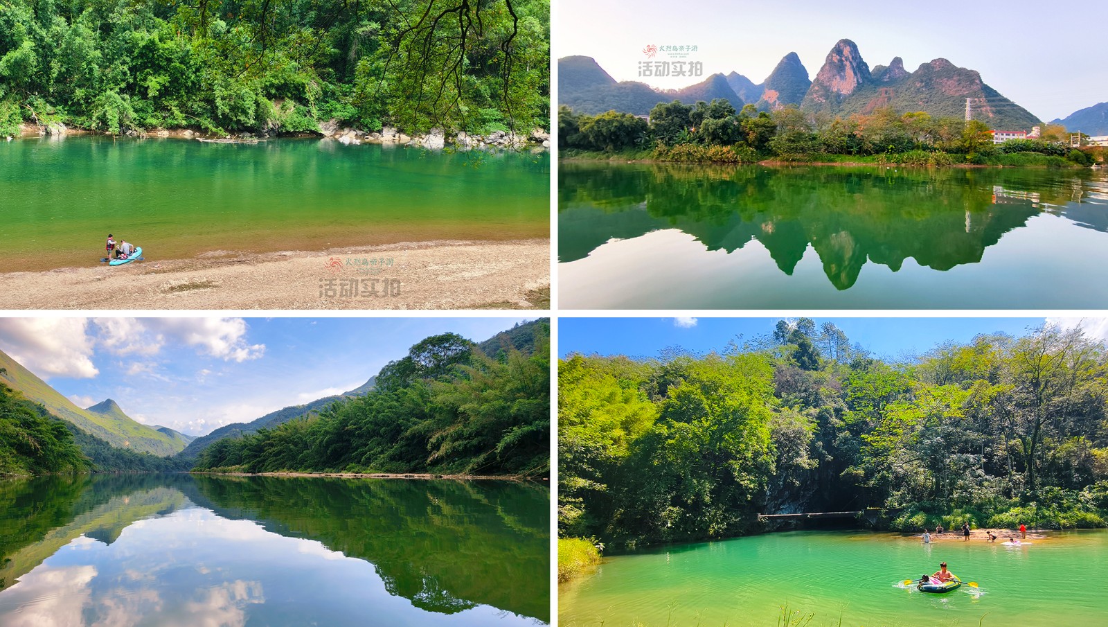 14:30 浆板漂流,出发顺江而下划行8km,两岸峰林错落有致,媲美桂林山水,体验人在画中游;
