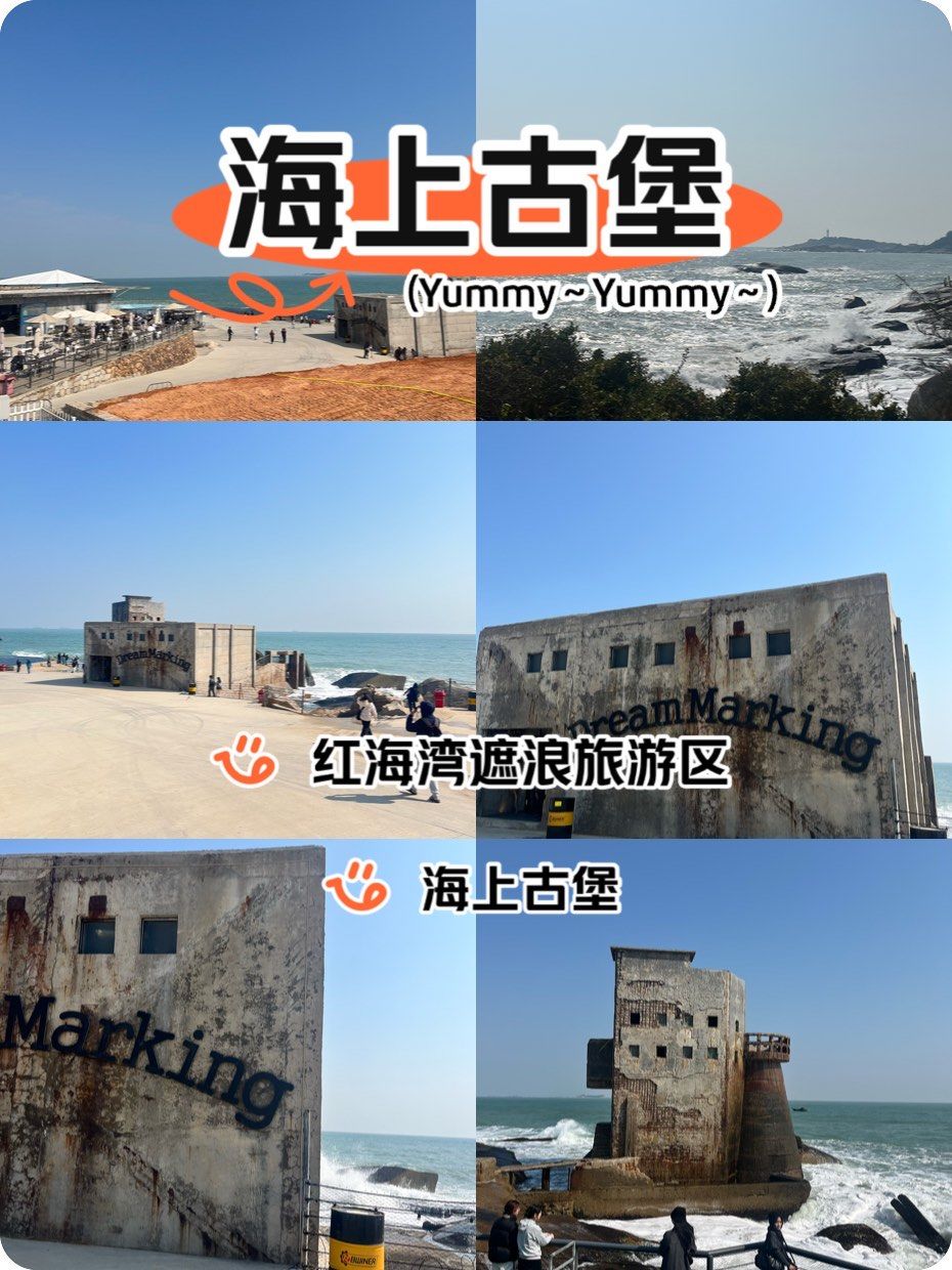 红海湾:海上古堡+礁石栈道,妈妈随手拍出废土风大片。