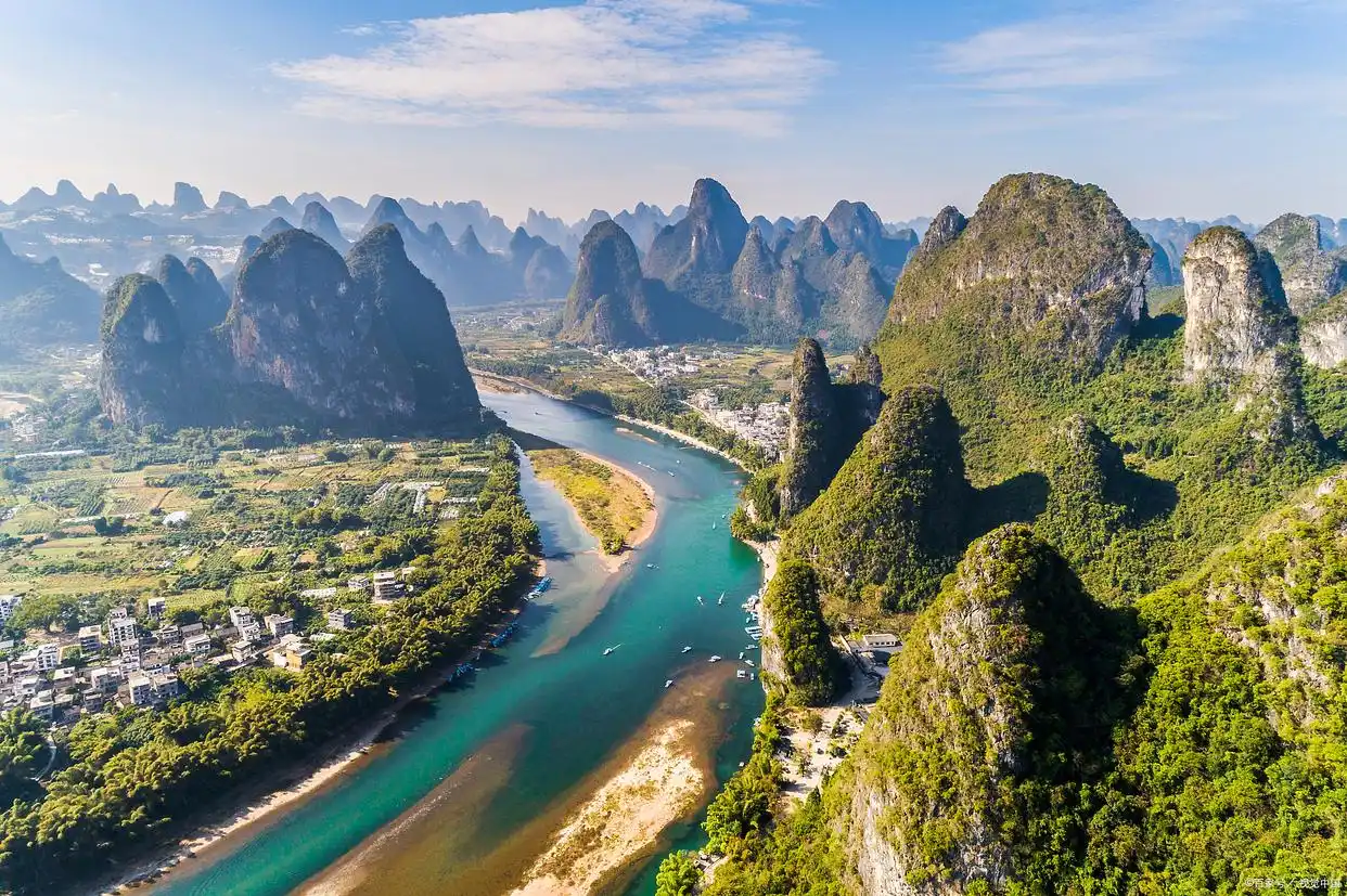 从“桂林山水甲天下“到“青山绿水锁阳朔“,翠绿群山作屏,隔世喧嚣;
