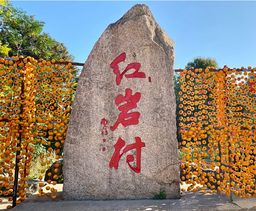 沿途红红火火的柿子像灯笼一样挂满枝头