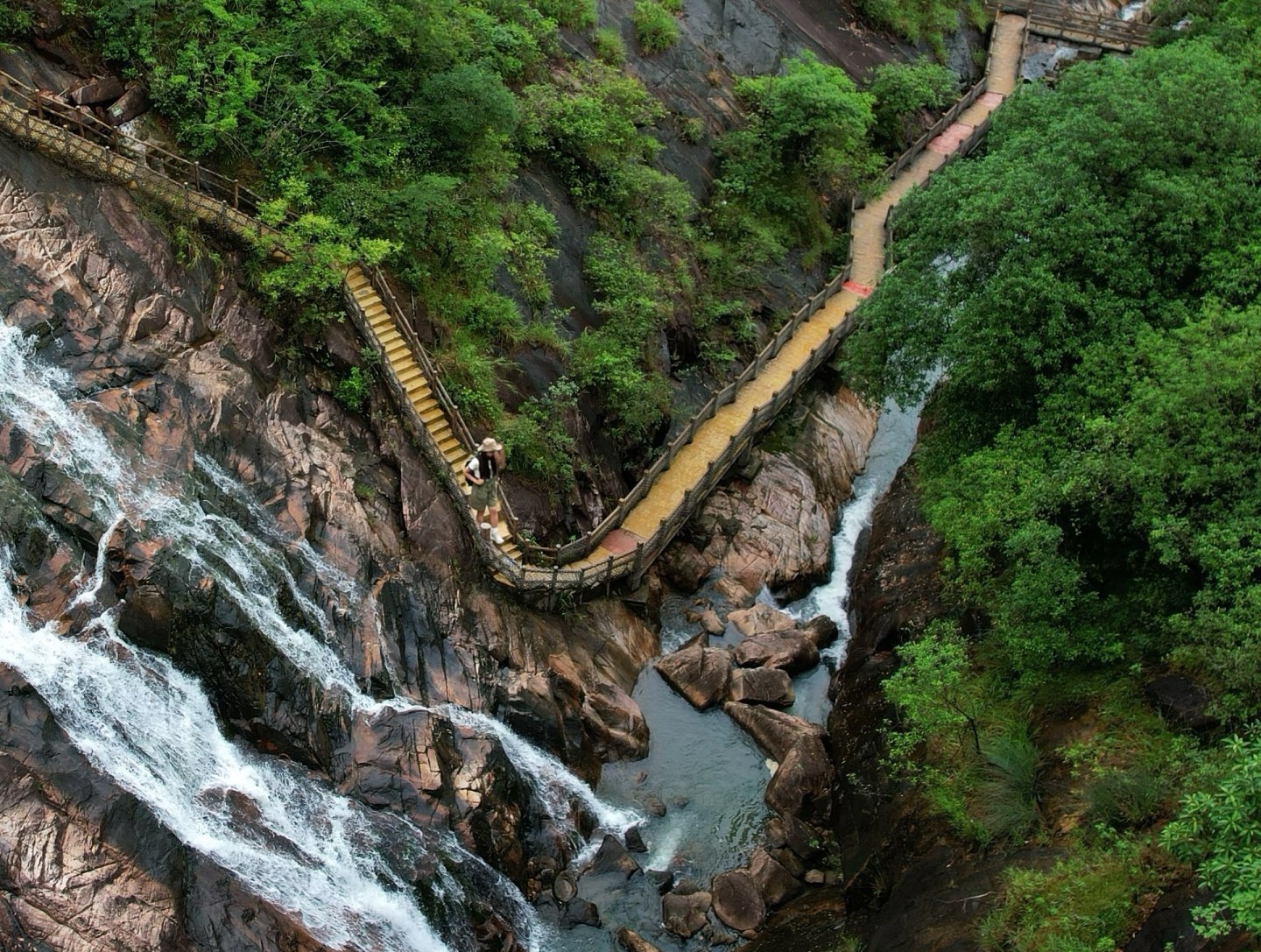 潺潺的溪流,美丽的栈道,让人一下子就放松下来