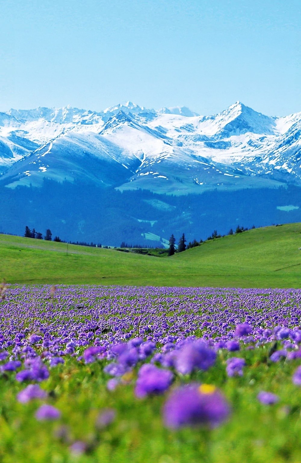 一边是无垠绿野,一边是皑皑白雪