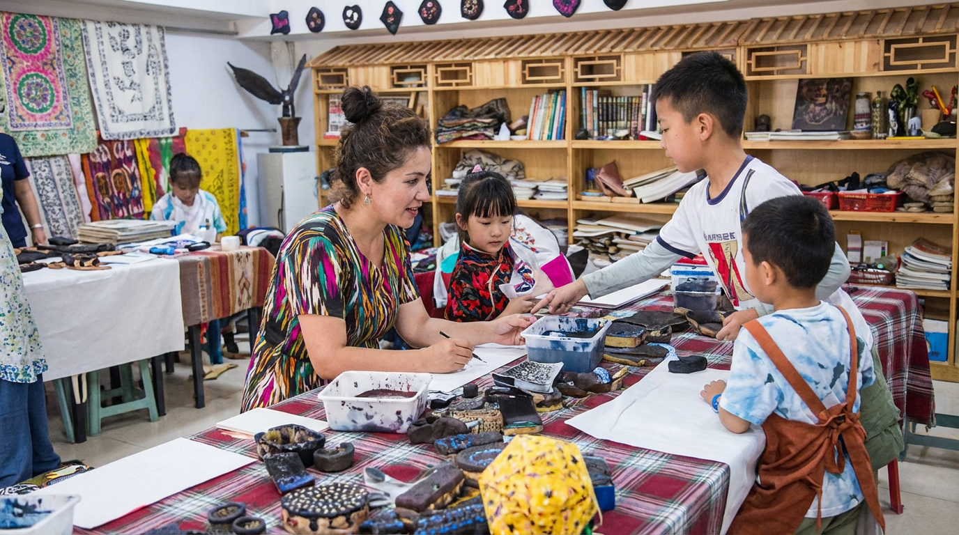 和当地的小朋友学两句“亚克西”