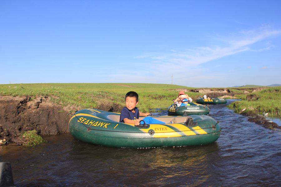 下午:前往乌兰公河进行草原漂流,这个也是孩子们的最爱,坐上汽筏子,漂流在草原上弯弯曲曲的河道中,比较享受,身边花香飘过,还可以去灌草原上的大眼贼,拎上一大桶水,带着孩子们玩,另外木兰围场的草原上还生活着一群可爱的精灵——梅花鹿,这是梅花鹿生长的天然家园,返程的时候我们去【鹿场】参观一下,还可以和这些精灵们近距离接触,喂喂可爱的小梅花鹿,太阳西下,返程回家;