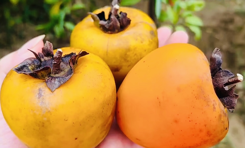 逢金秋时节,点缀着颗颗黄灿灿的柿子,象灯笼般在风中摇曳,