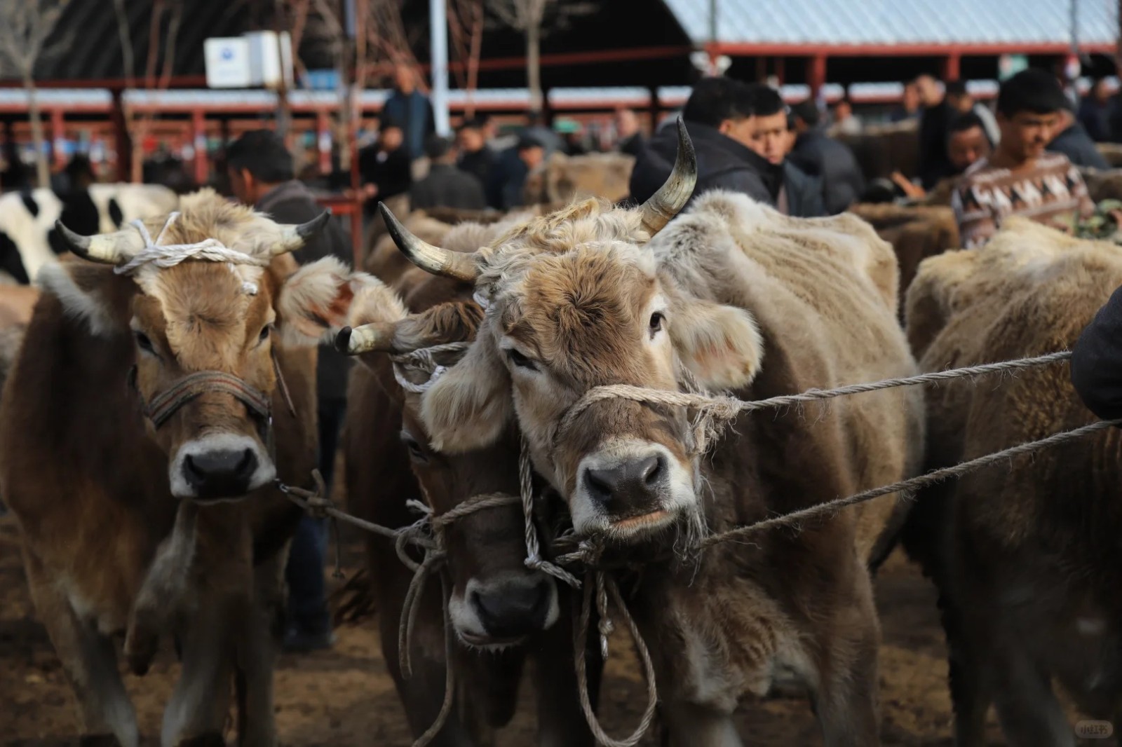 从那拉提出发,我们即将参观的是阿勒推皇宫巴扎,伊宁皇宫巴扎位置在伊宁县愉群翁回族乡境内。巴扎在整个新疆赫赫有名,活畜交易是全亚洲最大,全疆各地的牛羊贩子都会定期来收购牛羊,贩运到内地。