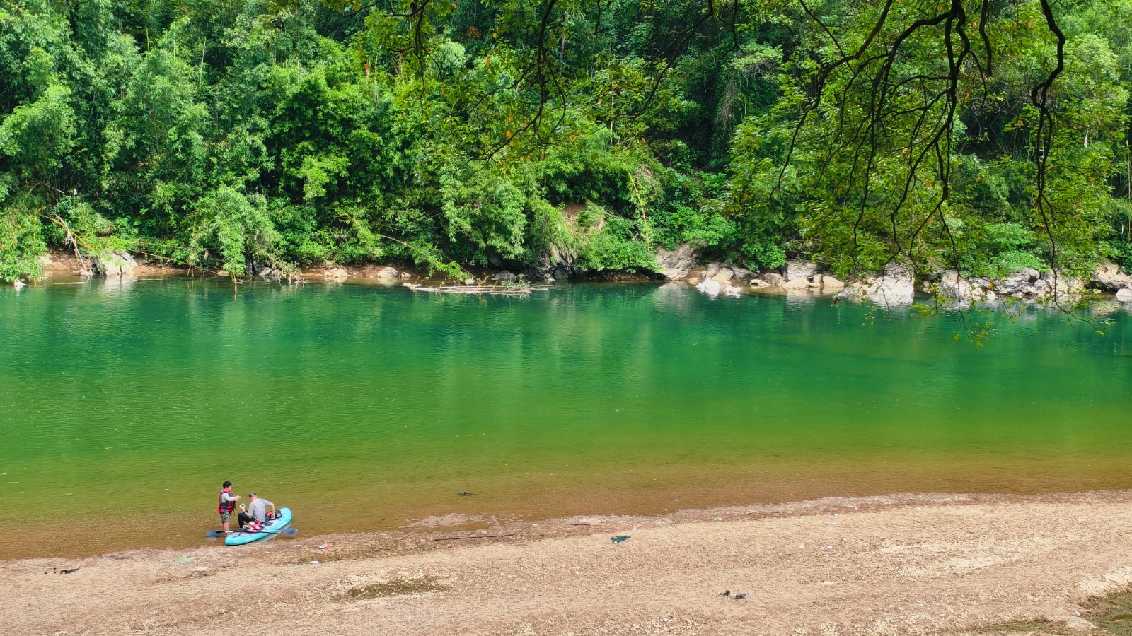 14:30 浆板漂流,出发顺江而下划行8km,两岸峰林错落有致,媲美桂林山水,体验人在画中游;