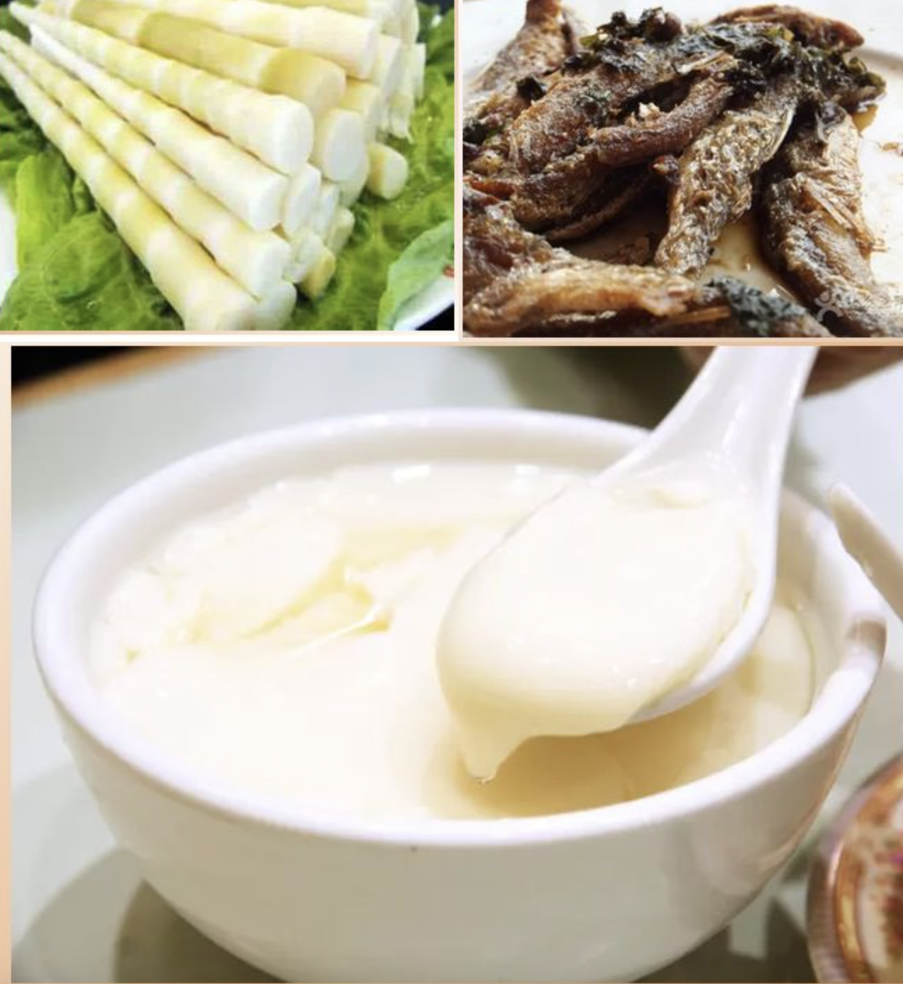 肥而不腻山水豆腐花嫩滑可口,甘润清甜炒竹笋、山坑鱼