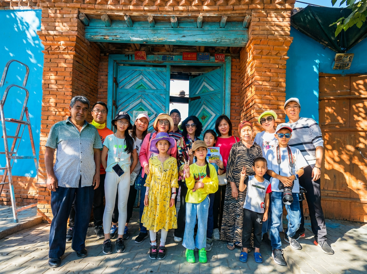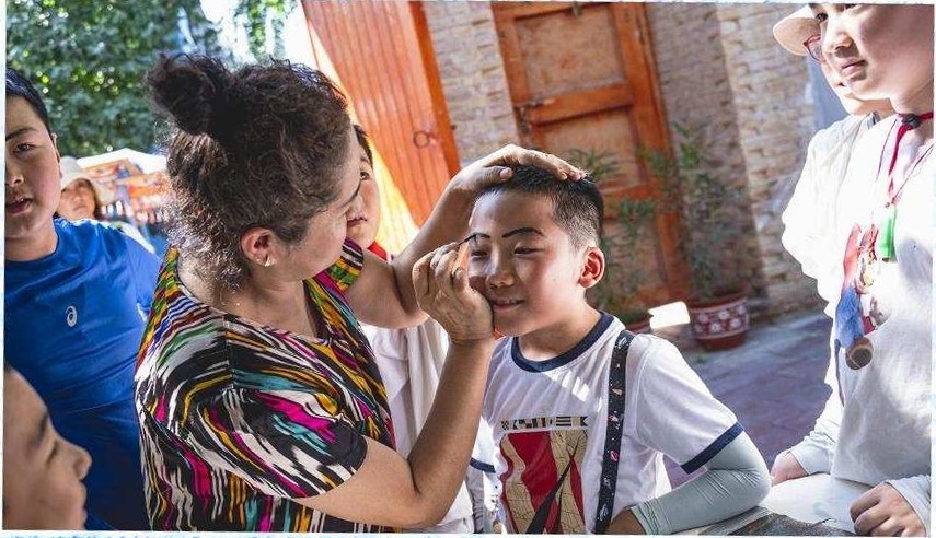 和当地的小朋友学两句“亚克西”