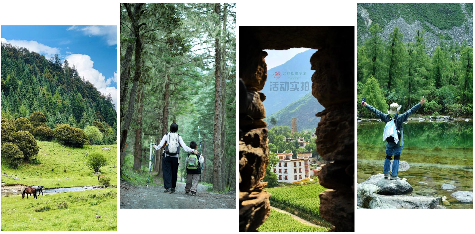 ★ 线路亮点5:徒步毅行,横断山谷来回14km的徒步,登顶葫芦海,欣赏到直冲云霄的原始森林和地毯般的草甸,体力差的可借助骑马挑战;