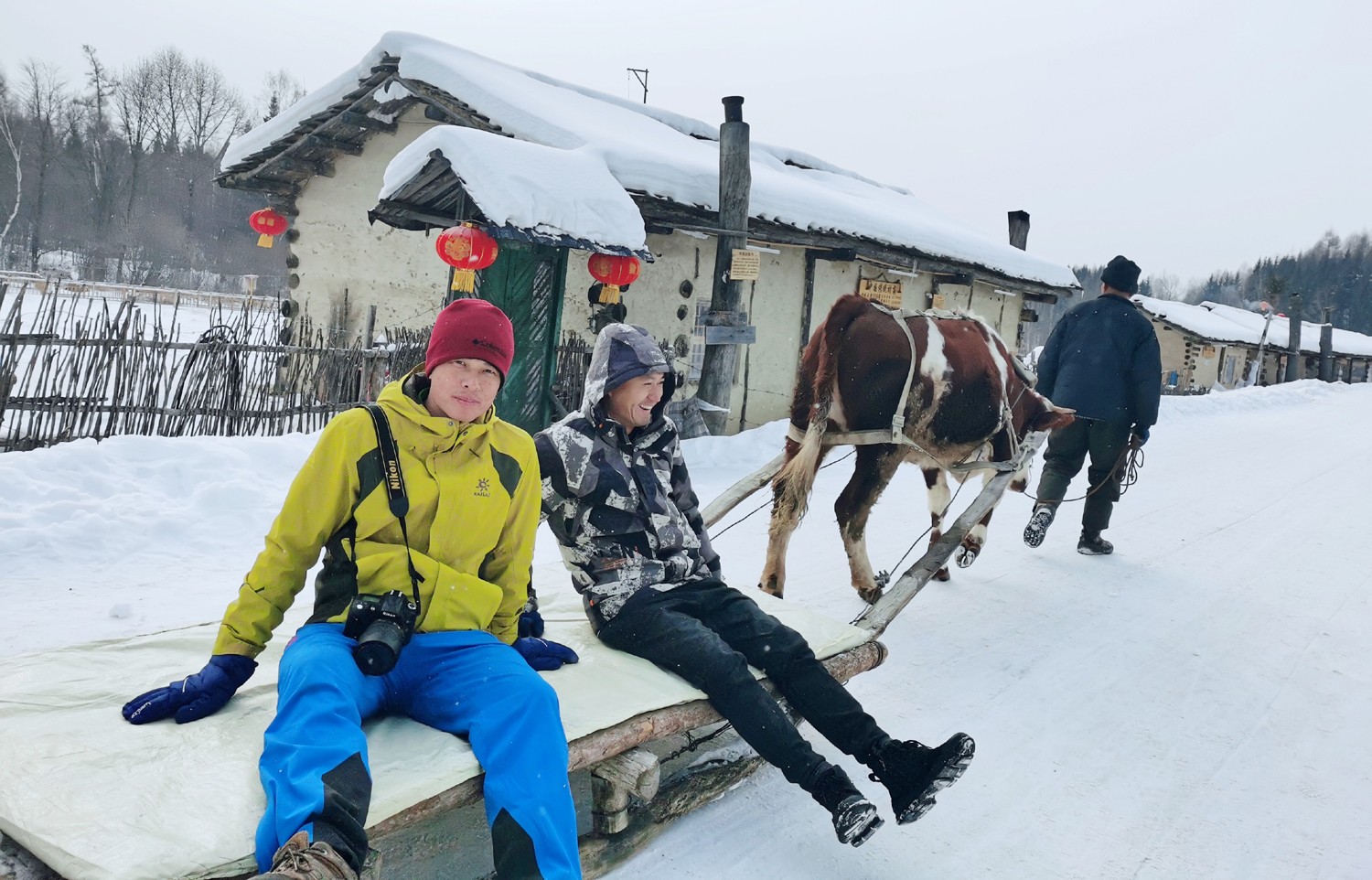 这里您将体验乘坐牛拉爬犁游览木屋村落,