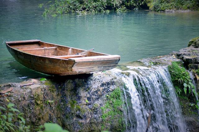 在空幽的峡谷里,木船在清澈见底的水上漂浮,恍惚间仿佛飞舞在空中。人行其间,恍若身处仙境一般~